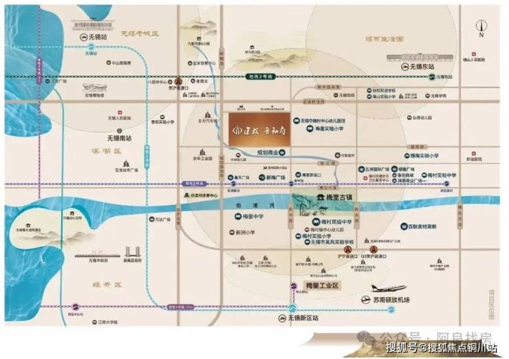 立体网:三横两纵(三横:金城快速路、泰伯大道、锡贤路。两纵:高浪快速路、新华路)2:商业:南侧一路之隔待开发商业综合体、对面万科8000平梅里商业、投资10亿商家333家的“江南第一古镇”梅里古镇,10万方的璟隆商业广场等3:教育资源:周边3000米范围内有:梅村中心幼儿园、梅里实验小学、梅里中学、梅里高中(无锡市排名第四)4:医疗配套:上海交通大学瑞金医院分院:新瑞医院,三甲医院锡山人民医院、无锡人民医院5:文体娱乐设施:投资10亿的伯渎河体育公园、江南第一古镇——梅里古镇