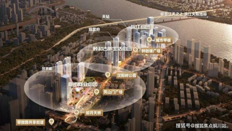 项目总建面约147万方,由15个地块组成,划分为三大组团——“滨江组团”、“颐和古树生活组团”和“都市商业组团”。