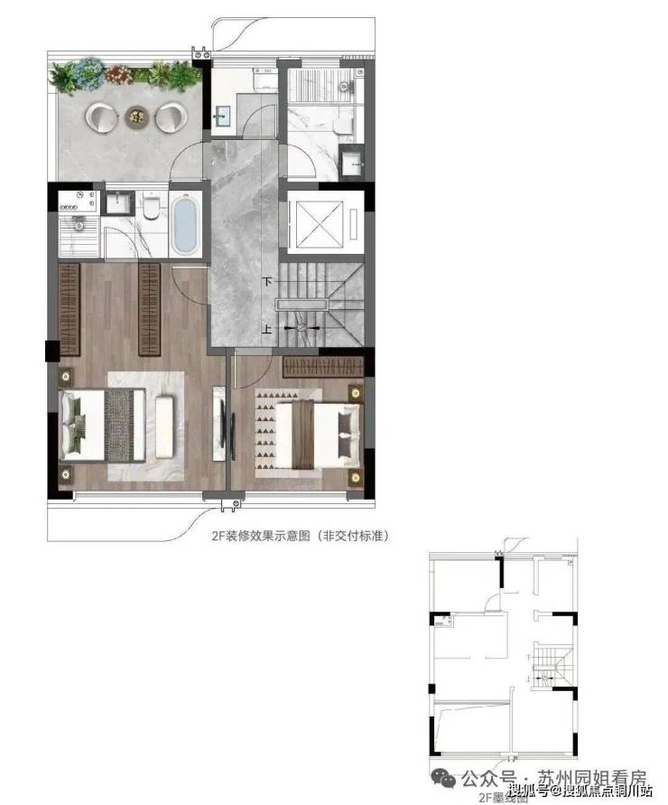 二楼朝南套房+朝南次卧,预留客卫+家政间,朝北带露台;