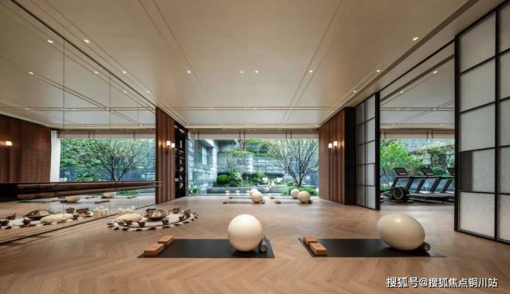 健身房、瑜伽馆、恒温泳池位于生活馆一侧地下一层,全景落地窗将下沉庭院自然景观引入室内,让生命在律动中与自然同频。