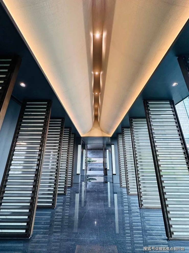 洋房公区留有架空层设计,实现观景走廊、花艺展示空间、下午茶沙发区、户外休息区等4大活动空间。洋房楼栋大堂都设计了双大堂、首层礼仪大堂、地下大堂光厅迎宾打造,酒店式电梯厅。光带汽车坡道配合大面石材上墙切面金属吊顶打造尊贵归家仪式感。