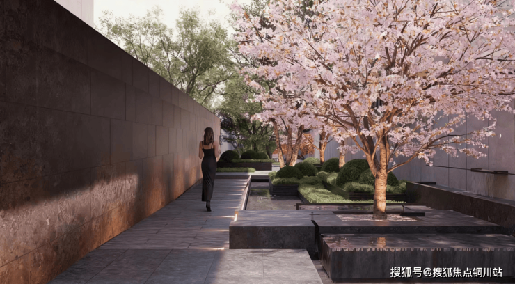 它告别了传统社区在局促空间里“造景”的束缚,转而以“规划一片生态”的思维,将约6000㎡的滨水绿带、近3000㎡的下沉庭院,以及建筑之间广阔的间隙,全部转化为景观的舞台。