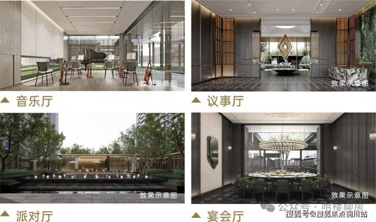 本案凭借超前理念,将酒店式社交场景融入社区配套,把“私域会所体验”融入主题架空层。三馆四厅”的超配主题空间,构建更有温度的“菁英社区”,为城市菁英圈层营造豪宅式生活场景。