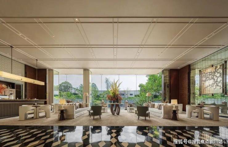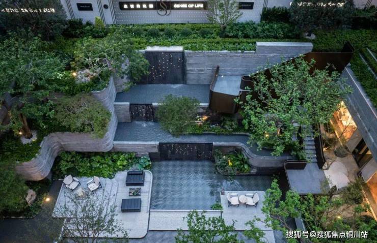 再譬如说那个立体交叉的庭院,有着博尔赫斯“交叉小径”的复杂。“浮香水境”的倾泻;“层林叠院”的台地,以及“共游洄廊”的移步换景,把一座全地貌的大自然搬回家。再结合地下会所和三大泛会客厅,“一窗一世界”背后,就是“庭屋一如”。