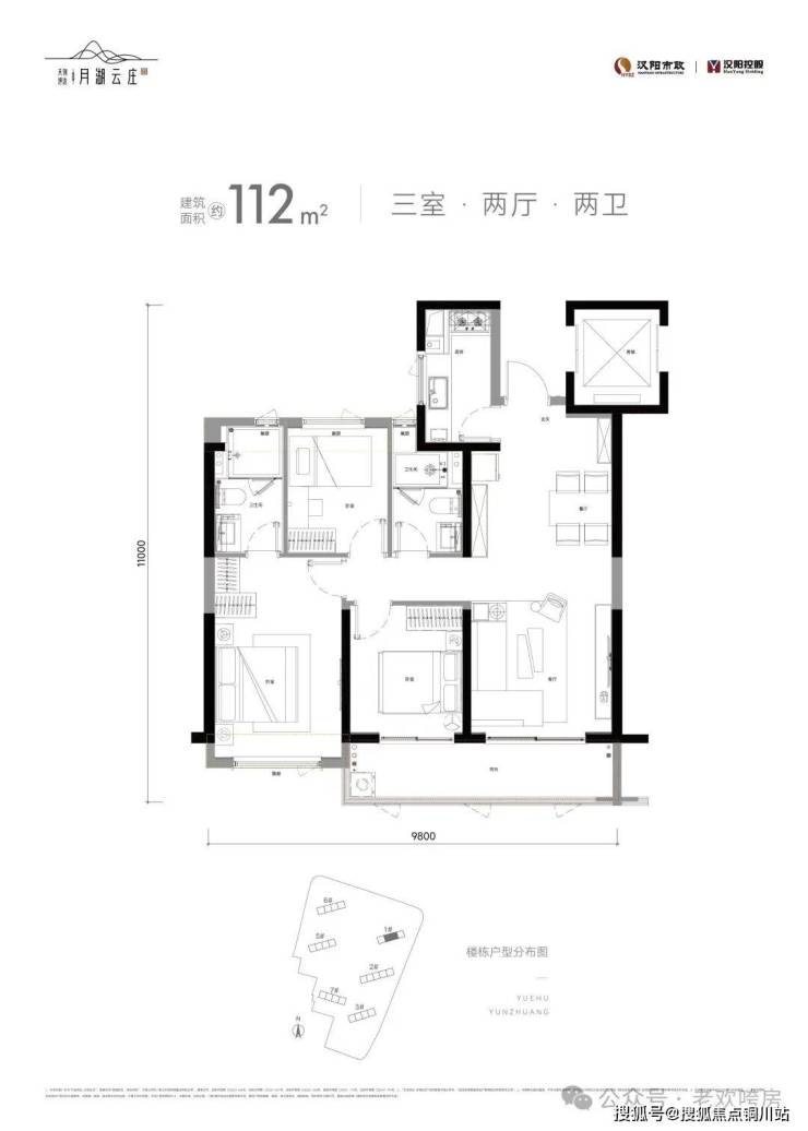 还有建面约112㎡的精致三房户型,飘窗和阳台改造优化后得房率可达81%。户型方正实用,是城市年轻人住进内环江景房的超值之选!