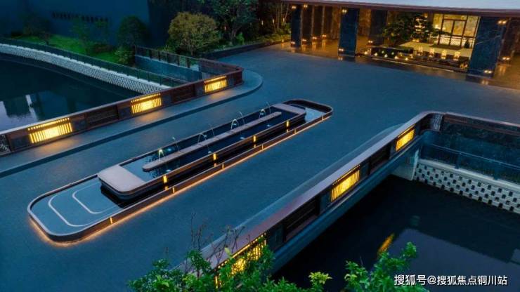一座七韵桥,搭配丛生香橼、黑金礼仪喷泉,营造出江南世家渡河而归的归家体验。