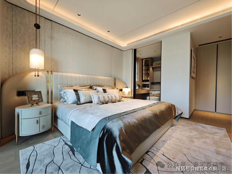 逸庐偏偏不走寻常路,没有盲目追随当下流行风格。走进高层的样板间里,扑面而来的就是素雅——浅色的影木饰面,浅色的地板,浅灰色的皮革软包,几乎没有任何空间是跳色的,审美非常高级。