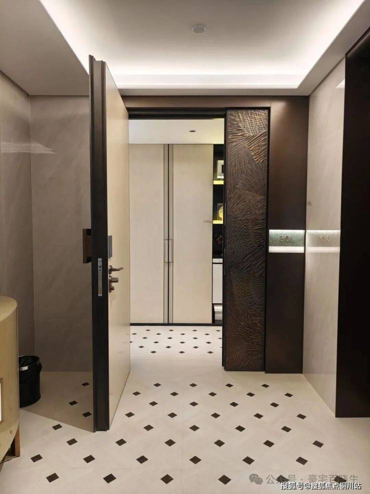 从小区南侧的次入口进入,最吸引人的就是由75片珍贵的玉石拼接的玉石照壁,温润玉石与冷调金属相衬,光线流转间,含蓄托出中国人最喜爱的“金玉满堂”寓意。