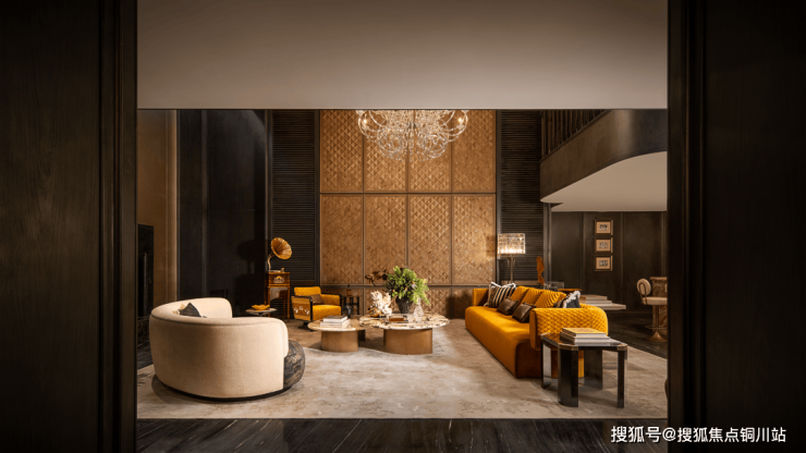 空间的表达不是显性的奢华,转而追求由时间累积的生活美学。挑高的空间在水晶灯的照耀下,通透而奢华。