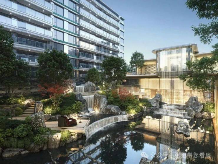 在下沉式的山水庭院中,设计师以“咫尺山林“为理念,打造八重小景,以“半山半水”还原东方园林的精妙与深远。