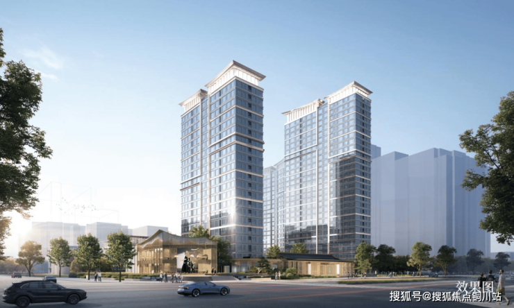 立面设计以宋式美学的传承性为基,高度抽象了新中式建筑中的屋檐、廊柱等代表性符号,取其形式和意向,用现代设计语言和材料进行转译,提炼为立面设计的一系列设计语言。