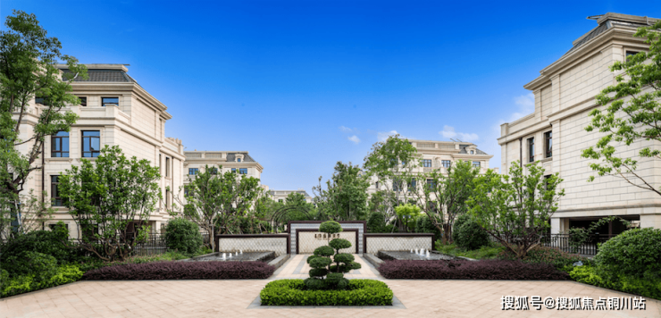 典雅的法式古典建筑掩映在花园中,以屋檐下的线脚、拱廊、石柱等经典细节,将法式的尊贵礼序、大气庄重优雅呈现;中央水景喷泉,艺术走廊,极具对称美感的建筑结构,一草一木一景,尽情诠释着“枫丹白露”的浪漫。