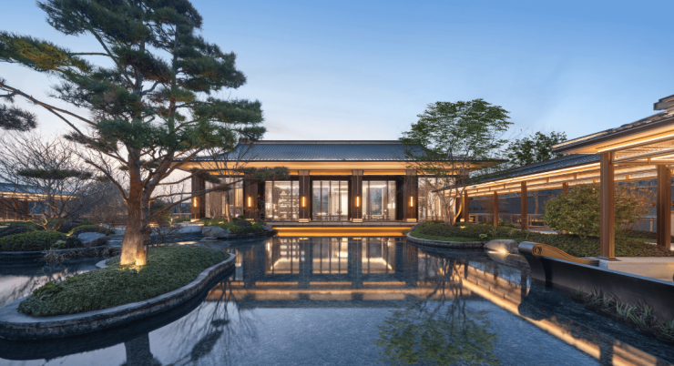 下沉庭院,一幅江南瑰丽山水画境铺陈眼前。