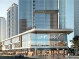 南入口是繁华商业中的酒店式迎宾大堂,与迎宾前场的弧形水景,斑驳水景辉映着宽幕立面。