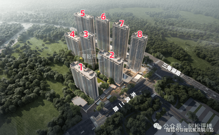 首推楼栋都紧邻小区大门和景观庭院、会所等,7、8号楼位于小区北侧,高区可看三角湖,视野极好。