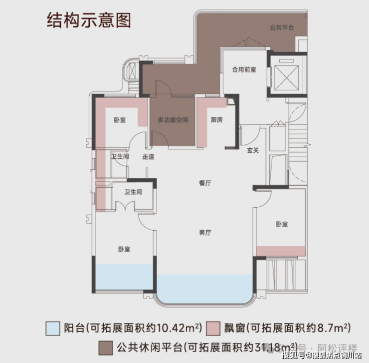除此之外,每一户还有至少7个飘窗,2个阳台以及一个超大公共平台不计容,优化后得房率超120%。