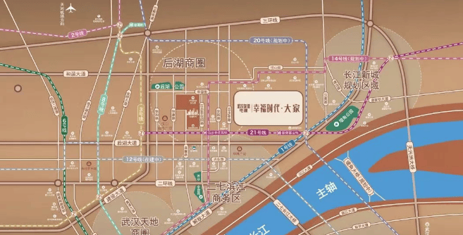 轨道交通:项目周边直线 3km 范围内有 10 个地铁站,包括新荣、百步亭花园路、丹水池、堤角、后湖大道等 。其中距离最近的地铁站是新荣站,轨道交通十分发达 。通过地铁网络,居民可快速畅行武汉三镇 。例如,乘坐地铁可便捷抵达汉口核心商圈,如江汉路步行街、武商 MALL 等,享受购物、娱乐、美食等丰富的城市资源;前往武昌、汉阳的工作区域或旅游景点也极为便利,大大节省通勤和出行时间 。