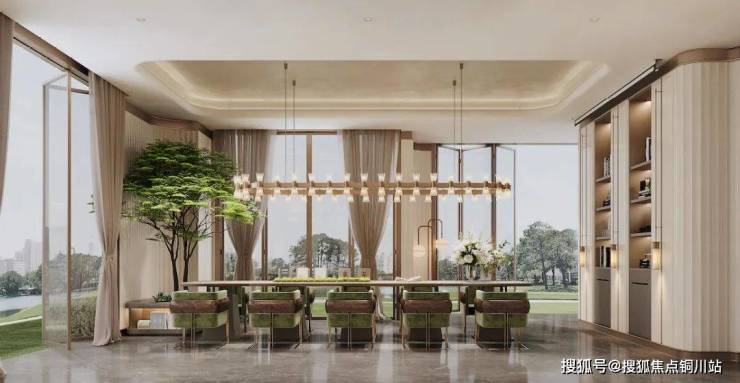 项目规划约155m²现代美学海派风奢装泛会所,四面落地窗、中央空调,地面采用拼花地砖,墙面采用浅色石材、木饰面和皮革等材质搭配,设置会客区、水吧区、聚会区,满足会客、品茗、休闲、聚会等功能,匹配菁英人群所需。