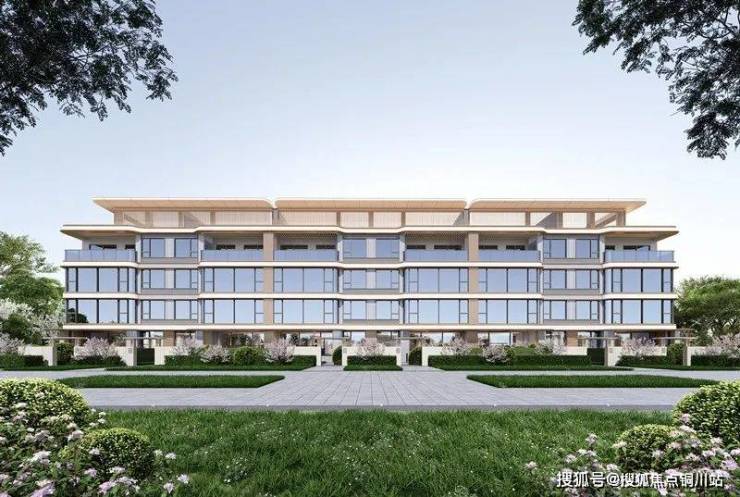现代美学系建筑,南向外立面采用大面积落地窗,搭配湾流曲线设计和石材、铝板、多彩漆等雅淡浅色系材料,定义主城墅居封面新高度。