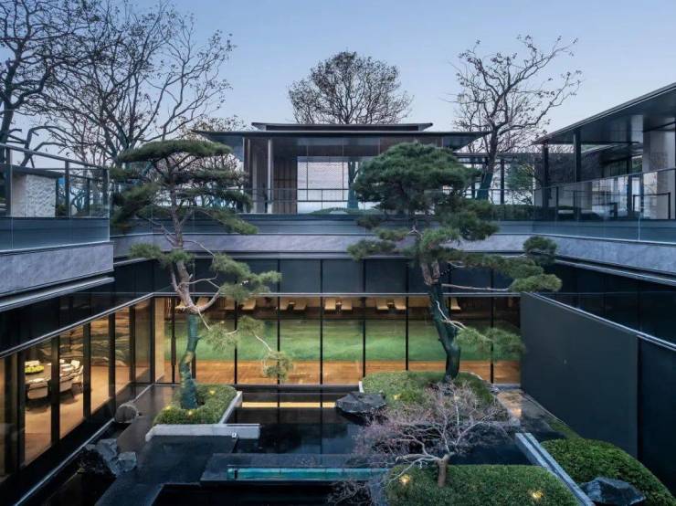 会所将下沉庭院360°环抱,全维度沉浸式观林涧交叠。在这里,可赏日光下琉璃光桥在池水之上青绿流转;可赏清风里青松默默,锦鲤翩翩;不同功能空间共赏一处深涧幽谷,全天候私享“深涧问禅”的静谧,内动外静,更能折射出不一样的内心风景