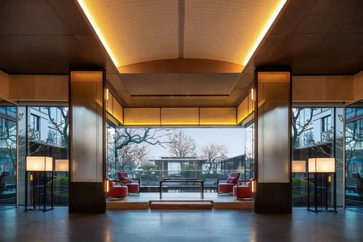 穿过会所来到尽端,落座于古琴两侧,观镜水微波,乌桕的倒影摇曳;与远处的伫云亭遥相对望,开启一场无言流动的遐思,寻味文人桕下抚琴的妙趣。
