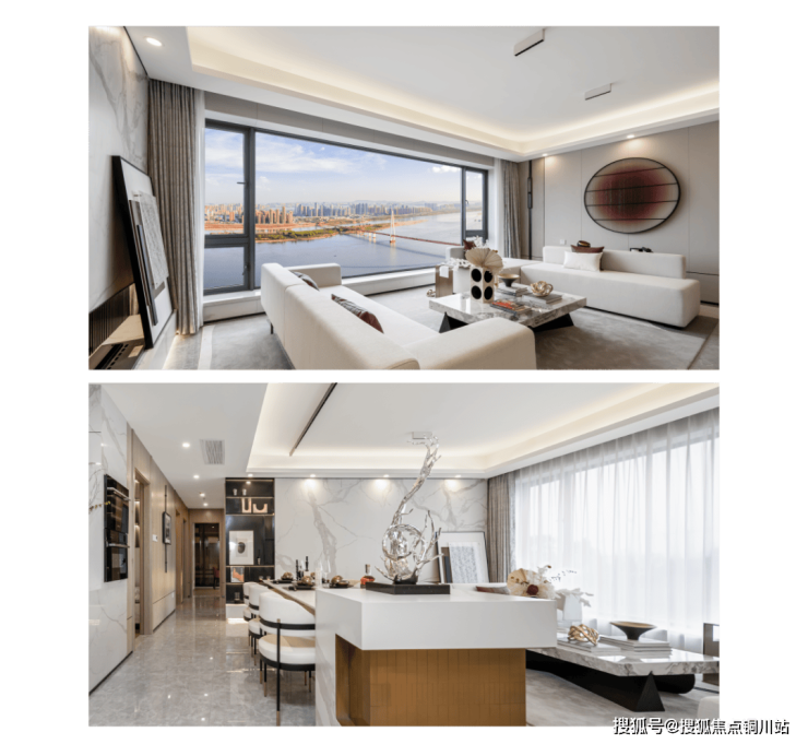 中国电建地产深研当代菁英的审美趋势,结合江城城市美学升级,为洺悦江湾量身定制兼具现代质感与优雅艺术的公建化立面建筑,屹立江畔,挺拔大气。采用“框景”理念打造大尺度窗墙比,光影流转中映射壮阔一线江景。