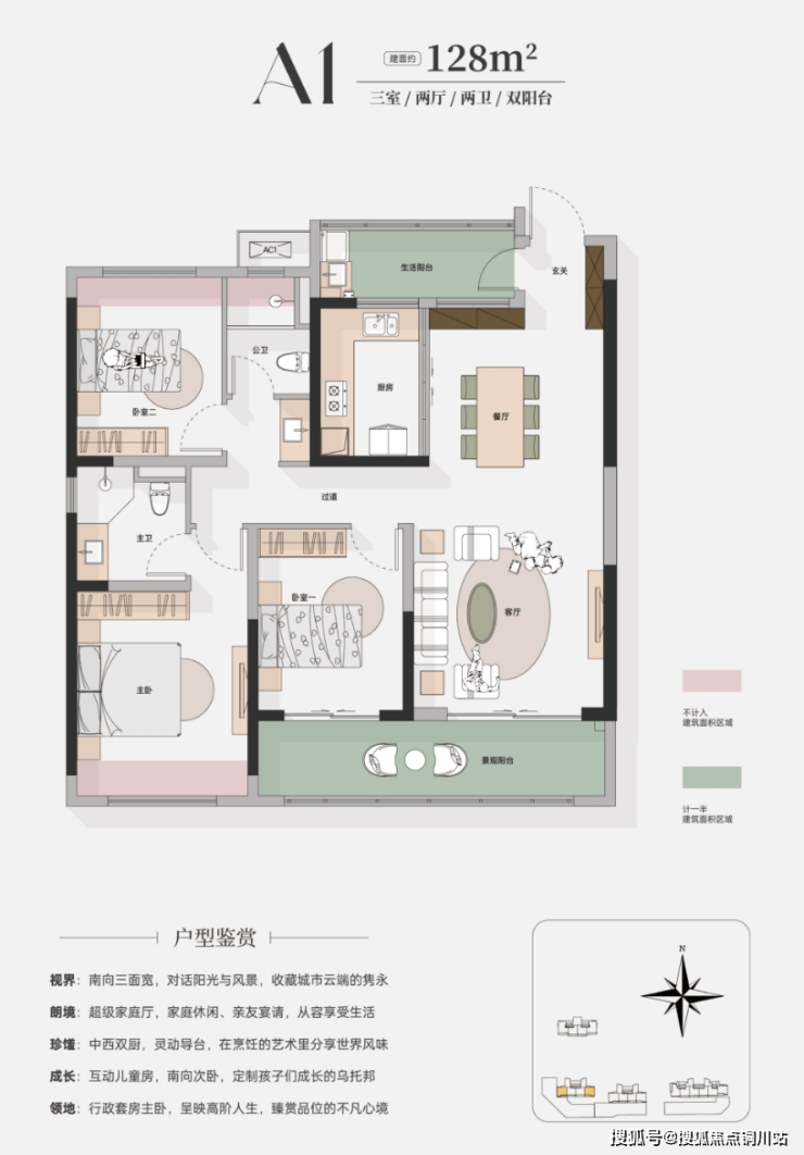 建面约128㎡边户,三房两厅两卫,双阳台+3飘窗,改善必选