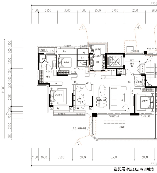 150㎡核心亮点:南向L型巨幕空中庭院,加上双层挑高设计,让客厅和空中花园拥有了无遮挡的IMAX级观景效果。北向还赠送了超大公共平台,可以作为“家庭第二客厅”。