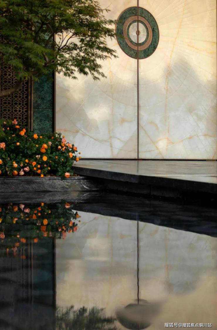 整个归家门楼,较街面抬升约90cm,入口照壁嵌如意水波纹样,辅以家族徽章,精工巧作,门楼顶部宛如一顶东方华盖,尽显私邸尊崇之仪。