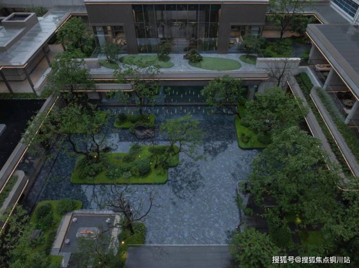 中心花园以水为轴,贯穿东西,展现秀美灵动之景。