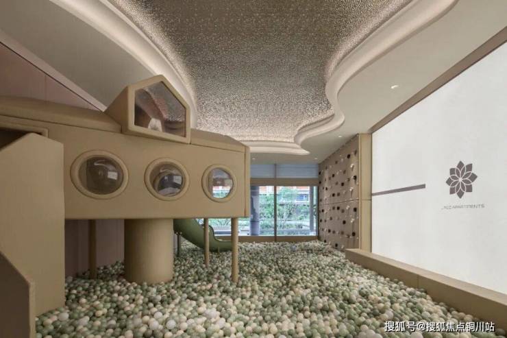 不同楼幢的架空层,根据不同年龄段业主的生活需求,按“润+”趣岛、乐想、与伴、无限、悦居、森活等不同主题,分别形成儿童游乐、阅读空间、会客厅、健身空间、生活空间等架空层场景。