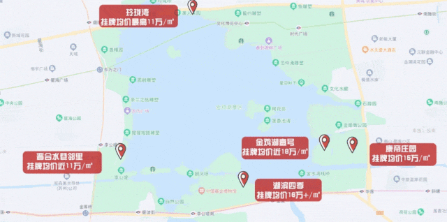 苏州向来“以湖为贵”,像金鸡湖、独墅湖,都是高阶圈层追求的居住形态代表,尤其是一线临湖别墅,二手房挂牌价10W+,创造无数价值神话。