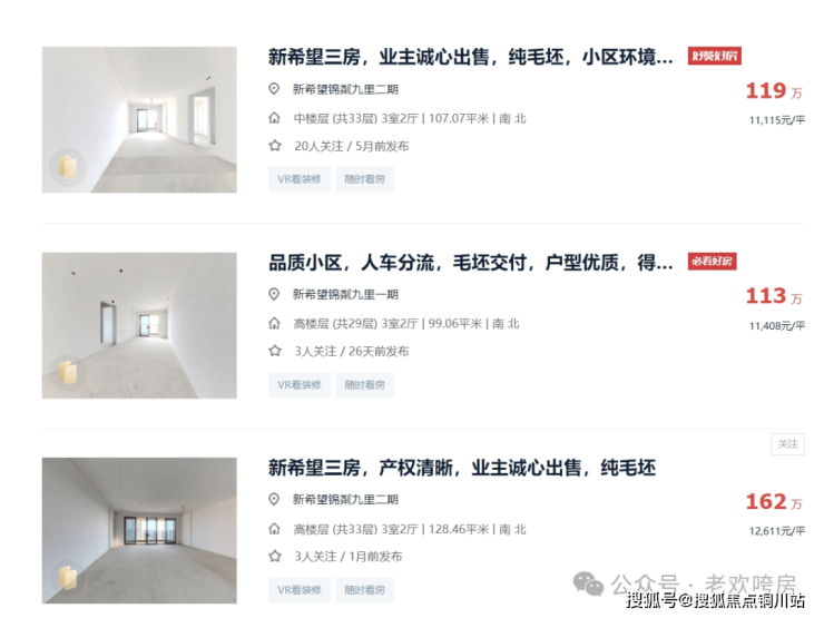 周边的二手房单价更低,项目东侧的新希望锦粼九里,毛坯成交价基本都在1.1-1.2万左右。旁边的光谷正荣府带装修成交价大概1.5万/平。