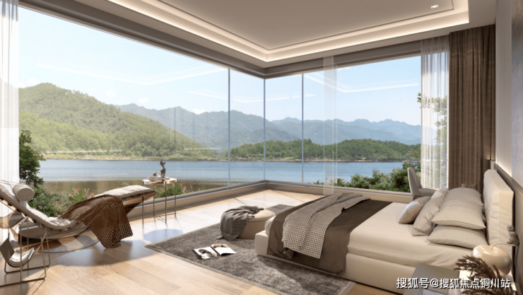 全景落地窗,模糊建筑边界,将自然景观引入室内;