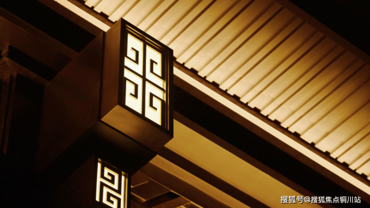 天瑞云院王府大门,整体造型采用对称手法,取传统建筑神韵,以三开间形式彰显尊贵气度。在外形上,取意“人”字坡屋檐,既有当代之风,又有古典之韵,更提炼如翚斯飞的飞檐意向,以现代主义的方式融合金属构建,以美好寓意篆刻人生如意。