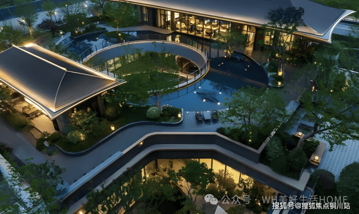 "三进五庭四院"园林,巧妙撷取张若虚《春江花月夜》的幽远意境,深研传世名画《四景山水图·春》的雅致场景,织就一片闲逸脱俗的东方美境。尤其是那方沿袭 "天圆地方"哲学理念打造的望湖水庭,天井垂瀑,琉璃景池,如梦如幻,引人入胜。