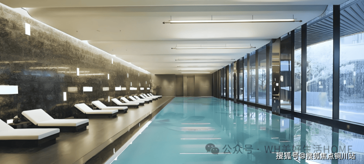 会所内设恒温泳池、健身中心、私宴厅等多元空间。以无边恒温泳池为例,天井树影倒映在池面,一番涟漪荡开又复合。行政酒廊、雅弈名室、禅意瑜伽室、雅集茶室等7大雅集场域,与室外园林相互交融,营造起沉浸式的宁静空间。