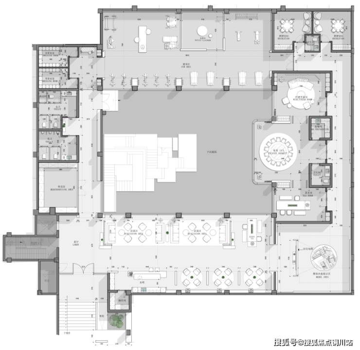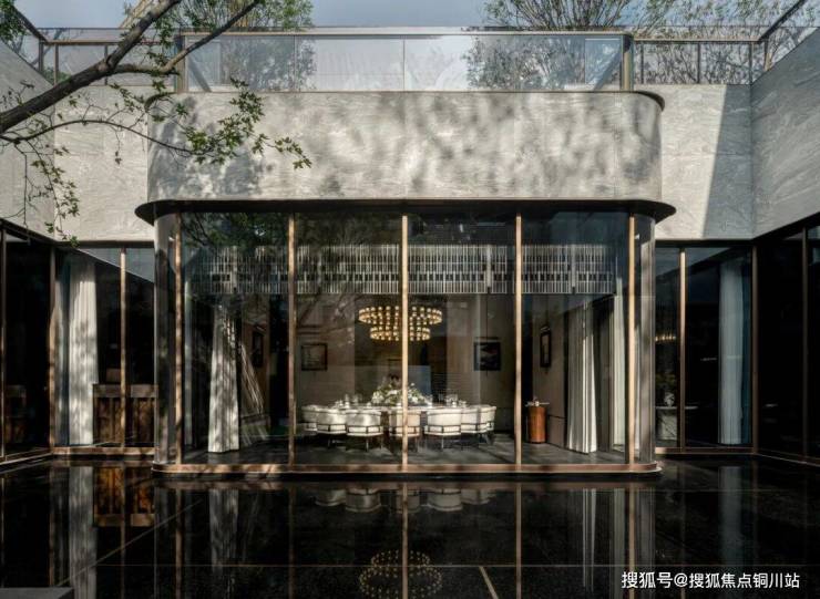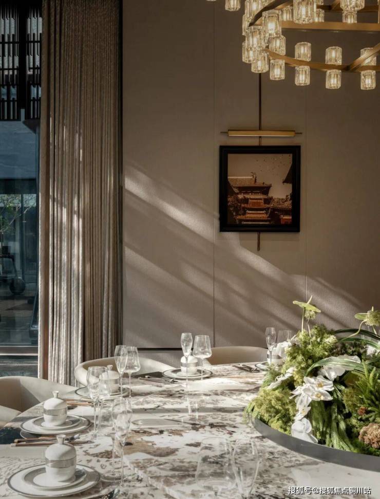首先,设计师以造景与借景等设计手法模糊室内外界限、实现空间之间的自然渗透与过渡。会所则依托围合式布局与四周落地窗,将自然光与景观充分引入。洽谈、私宴、健身等主要功能沿窗布置,使光与景伴随每一处空间体验,融为与自然对话的有机整体。