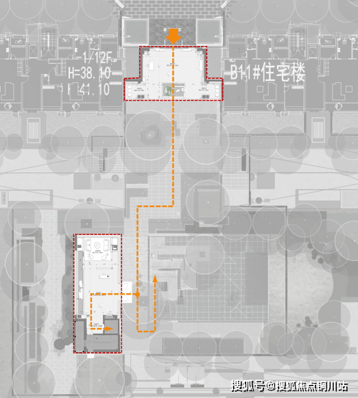 本次DIA负责的室内设计范围涵盖1F社区大堂、接待大厅与B1F地下会所。项目初期以展示功能为主,实际交付后将转化为业主专属会所。和很多跨越展示周期的售楼处兼未来会所类型的项目类似,项目在展示初期的参观动线需要穿过社区大堂、经花园过渡至会所一层接待区,再下行至负一层核心区域,动线较长且跨越室内外空间。如何不着痕迹地保持整体连贯性、创造流畅而富有记忆点的空间体验、实现室内外自然切换,是本次设计的核心思路。