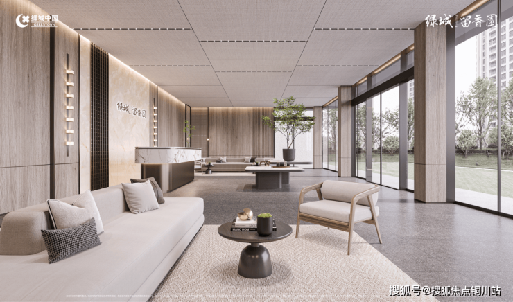 在外立面上,绿城留香园采用滨江同款的类公建化外立面,约0.23的高窗地比,搭配大面积玻璃与铝线条点缀,让立面更为通透、轻盈。