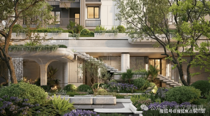 通过将小区整体抬升高度约5米,形成抬板+架空+下沉庭院的复合功能分区,打造立体浮岛花园,从阳光车库、归家、会所、园林景观等方面全面提升居住感受。