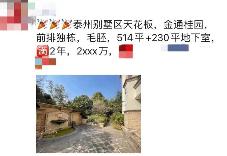 而据中介透露:此前,金通·桂园挂牌了一套前排独栋,毛坯,514平+230平地下室,总价2千万+,这个价格在泰州实打实的处于高位。