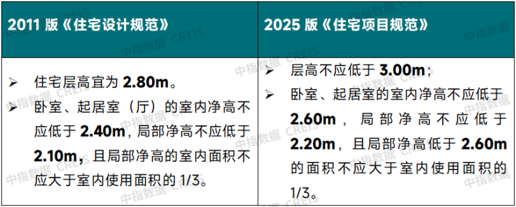 比如,四层以上住宅需设置电梯,全面覆盖低层住宅电梯需求,提升无障碍通行水平;住宅层高不应低于3米,净高不应低于2.6米,标准显著提高等。