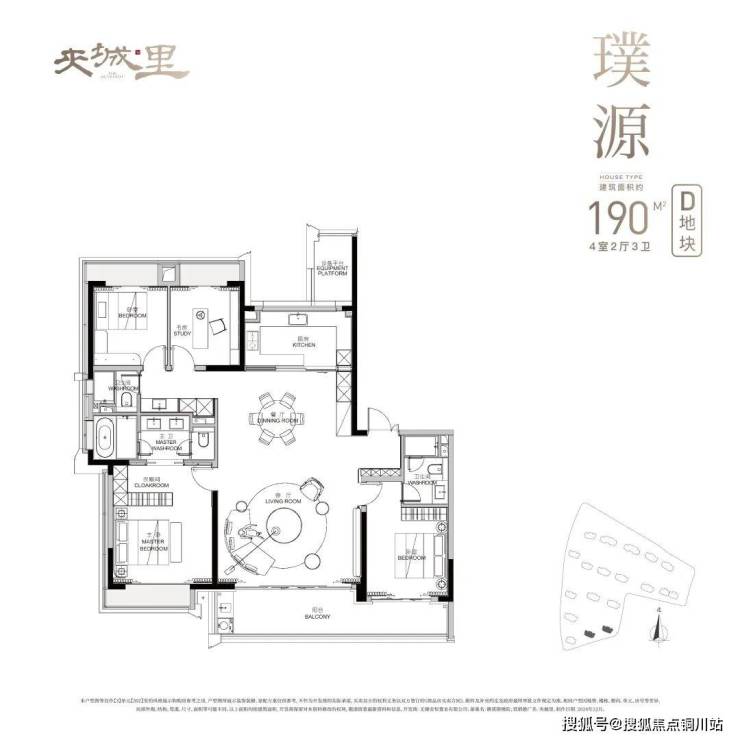 而建筑面积约190㎡户型,在建筑面积约188㎡户型基础上,将阳台升级至双开间阳台,拓宽了居家的视野与采光感受。