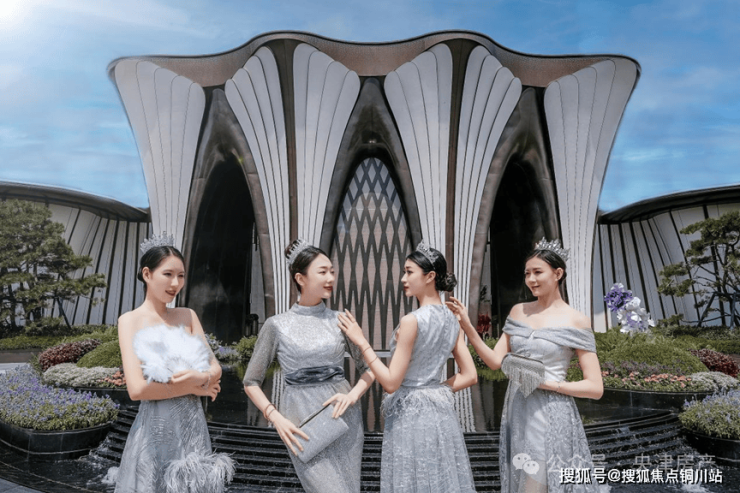 入口以层叠双曲面打造金色叶片,截面变幻如生命勃发,镜面不锈钢与光影共舞,将自然万象凝练为当代奢雅符号。