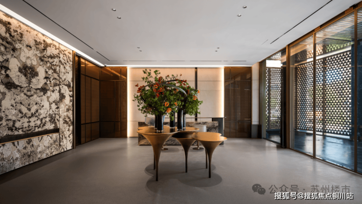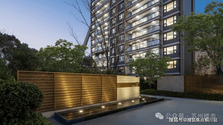 每个单元都有专门设计的入户景墙,专属定制灯箱,搭配多层次花境植被,这样的细节感,在整个苏州楼市并不多见。