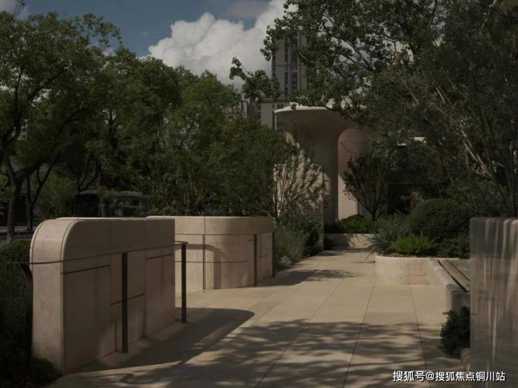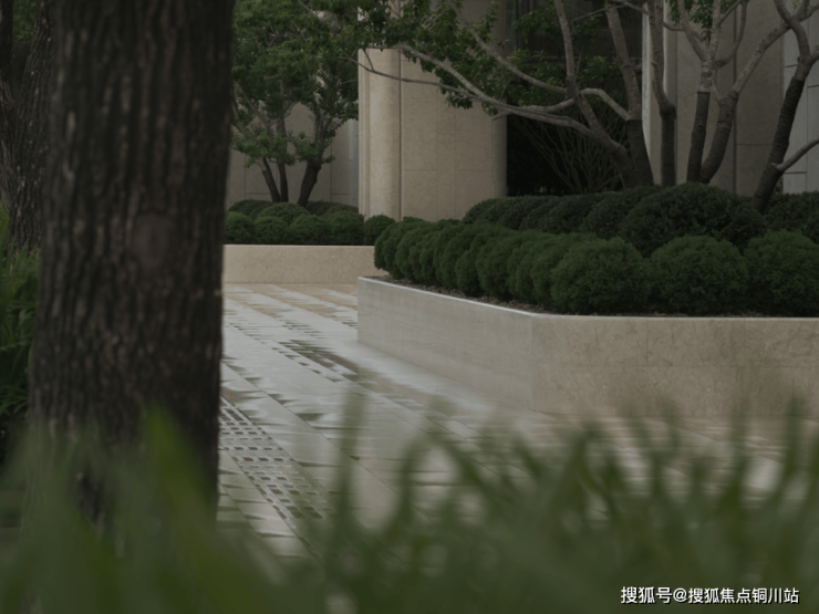 百余米的街廓尺度,不再仅是物理距离的度量,而是以巴黎圣日耳曼街区为灵感的生活舞台,重塑漫步的仪式感。弧形水景与米色系铺装以自然曲线勾勒瓯江的流动记忆,使街角广场成为「与城市对话的现代扉页」。树木的季相与光影的轨迹在此共谋,地面成为时间的画布,镌刻着从公共步入私密的辩证美学——一如卡尔维诺所言:「精准,源于对复杂的掌控」