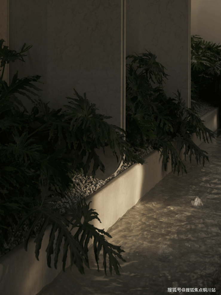中央叠落水幕,不仅是视觉的焦点,更是调节社区微气候的「呼吸器官」。我们以艺术的肌理,调整每一道水流的速率与形态,使其达到治愈的阈值,实现约翰·凯奇《4分33秒》式的环境音乐构想——它让聆听者专注于自然本身的白噪音,完成一次心灵的净化。