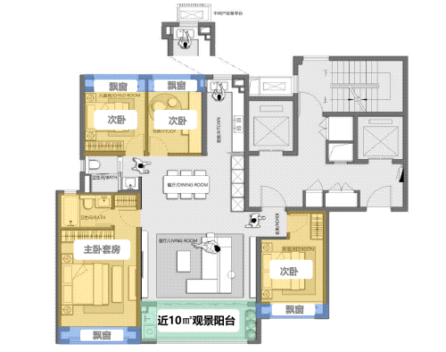 三卫设计,每个次卧的空间把握也非常得体,这个户型的空间奢阔感媲美核心区域建面约180㎡+、200㎡+。