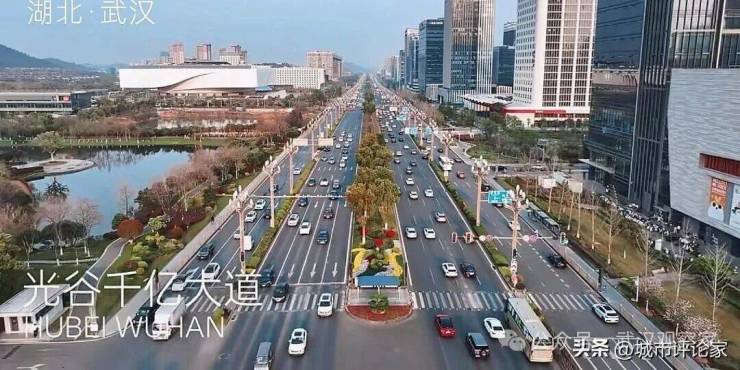 这条大道双向14车道,道路超级宽敞,硬件设施武汉一流,高新大道两旁分布了诸多企业总部、高科技产业园和商业体,展现出蓬勃的发展活力。